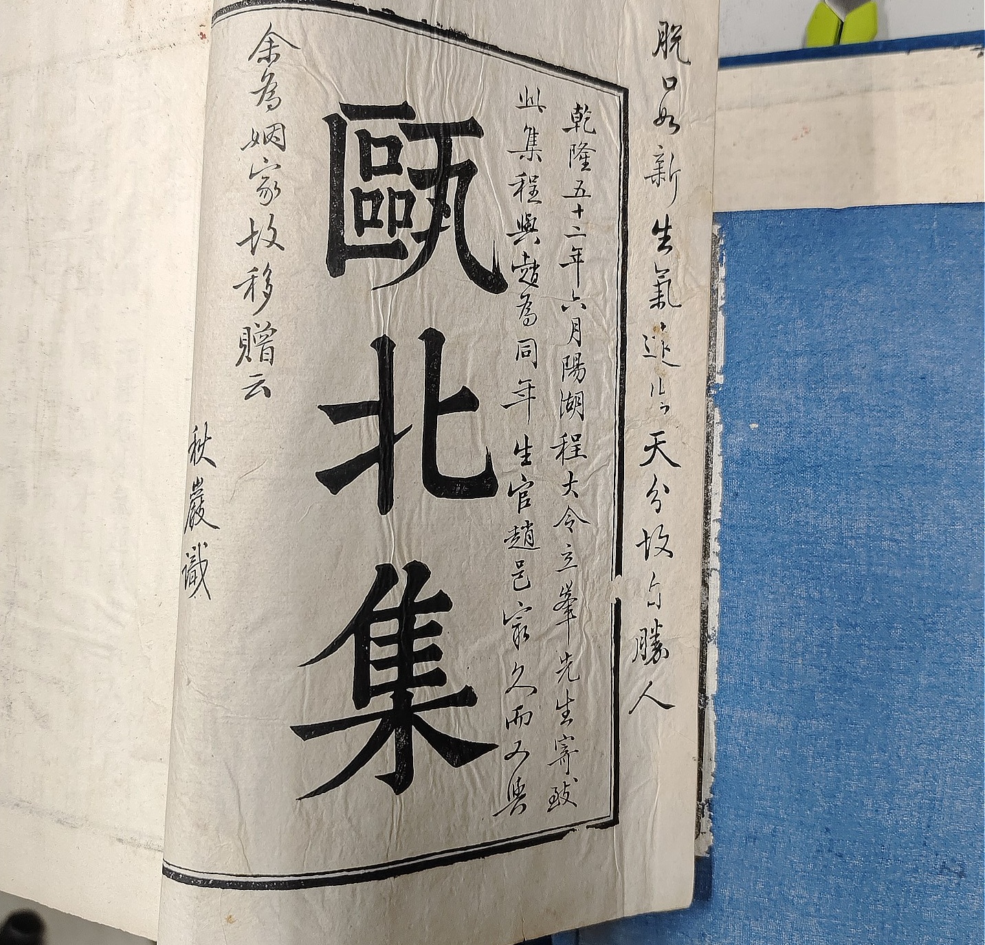 今回お譲り頂いた中でも、特に古い部類に入るのが「甌北集」です。